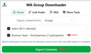 The WhatsApp Contacts Extractor tool is designed to export group contacts quickly and in simple steps.